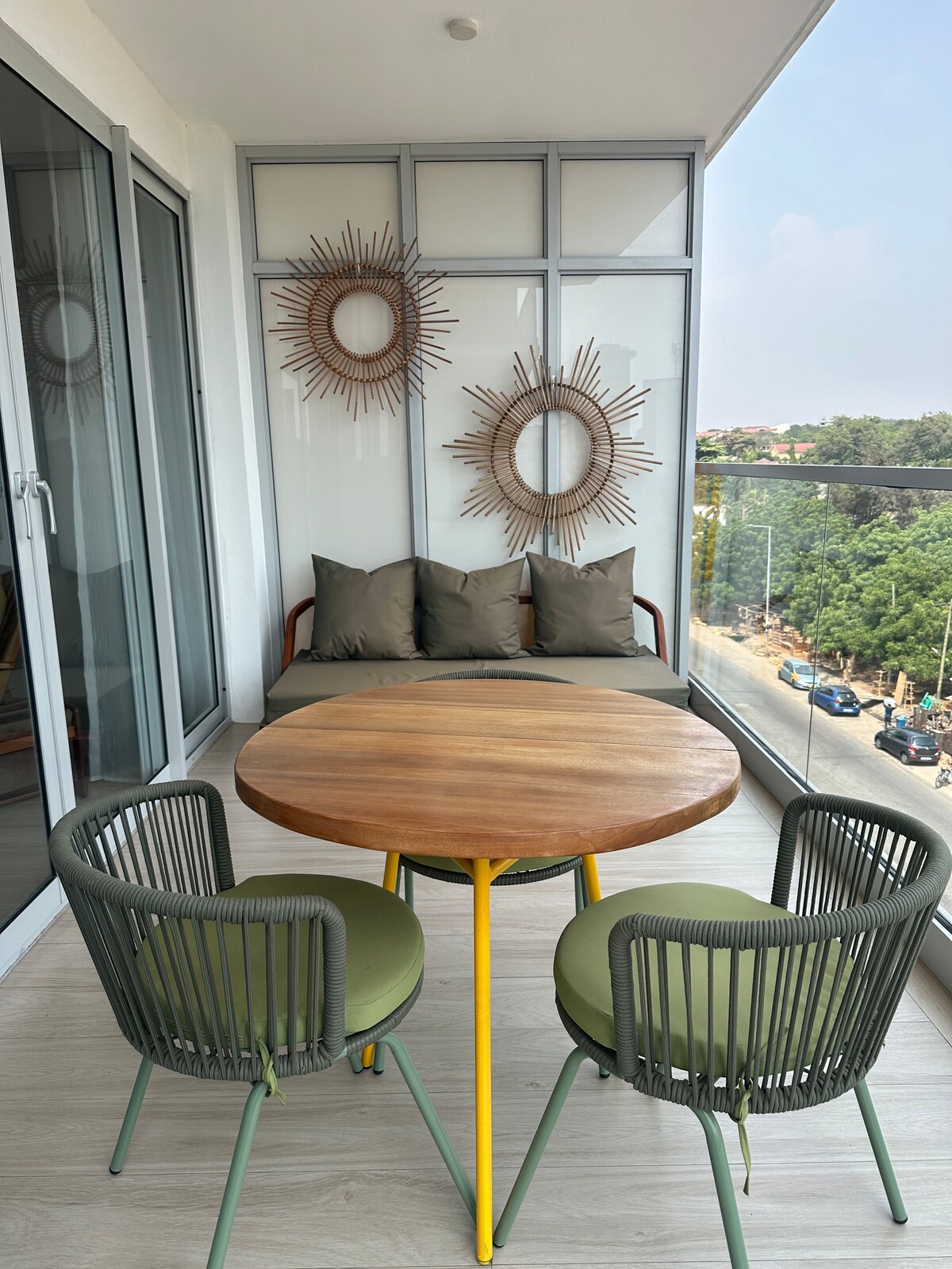 Your extraordinary Accra experience begins here. Book now and see why guests say ‘home away from home only gets better.’ Access to rooftop pool and gym. This stylish unit in Airport Residential offers hotel-level comfort. Enjoy a queen bed, vibrant yellow sofa, smart TV, fast Wi-Fi, cool AC, kitchenette, and a calm balcony. Walk safely to Airport City, restaurants, malls, cafés and Roman Ridge. 5-10 mins drive to airport. Perfect for business travelers, couples, solo guests and weekend escapes