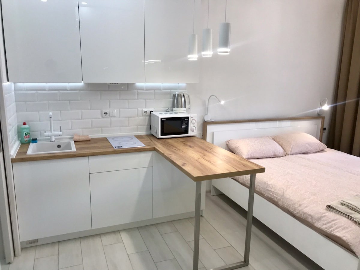 ¡Hola! Me llamo Julia y estoy encantada de darte la bienvenida a mis nuevos apartamentos de diseño (35 metros cuadrados) en Kiev. Me complace compartir contigo este elegante apartamento contemporáneo con un diseño de concepto abierto y una decoración de buen gusto. Aquí puedes encontrar todo lo que puedas necesitar para tu estancia: ropa de cama de alta calidad, secador de pelo, plancha, accesorios de baño y mucho más. Siéntete libre de comenzar tu día con una taza de un delicioso café o té de tu elección como complemento de tu estancia. ¡Bienvenido a casa!