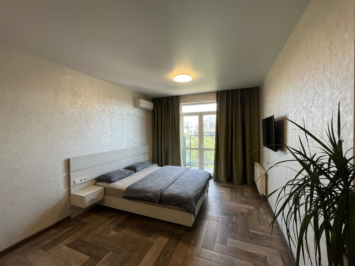 Apartamento elegante y acogedor con balcón que da a un patio tranquilo. El apartamento tiene muebles nuevos, una cama doble, un sofá para descansar, una mesa de comedor y una cocina equipada con todos los electrodomésticos y utensilios necesarios para cocinar. El elegante cuarto de baño está equipado con una moderna cabina de ducha. Dos televisores de plasma e Internet de alta velocidad para el trabajo y el entretenimiento.