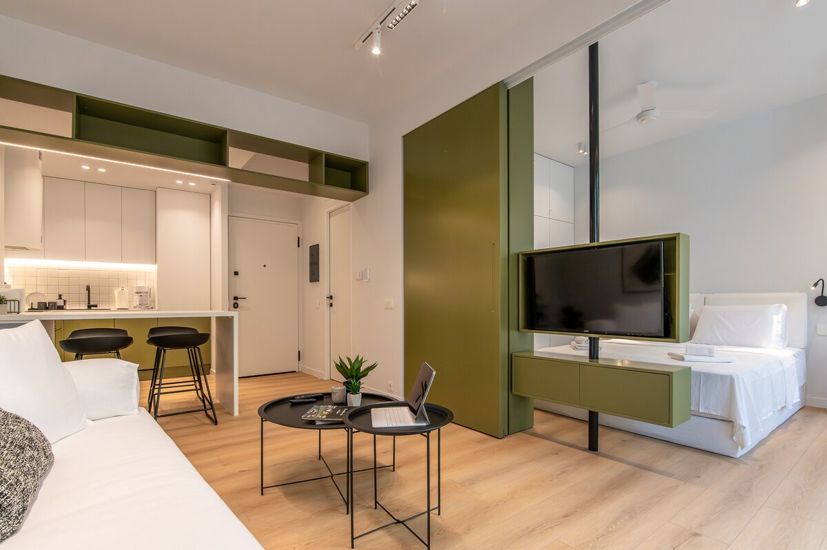Stay in style and comfort for days, weeks or months. Newly built 32 sq.m. studio in the city center, ideal for 2 people (there is a sofa bed for 2 more). We are sure you will love it because of the taste and attention to detail. Fully equipped with everything that you may need. Fast Wi-Fi (500Mbps) and free parking lot in a private car park right next to the studio. It is just 3 minutes away by foot from the train station and the beach of Chalcis.