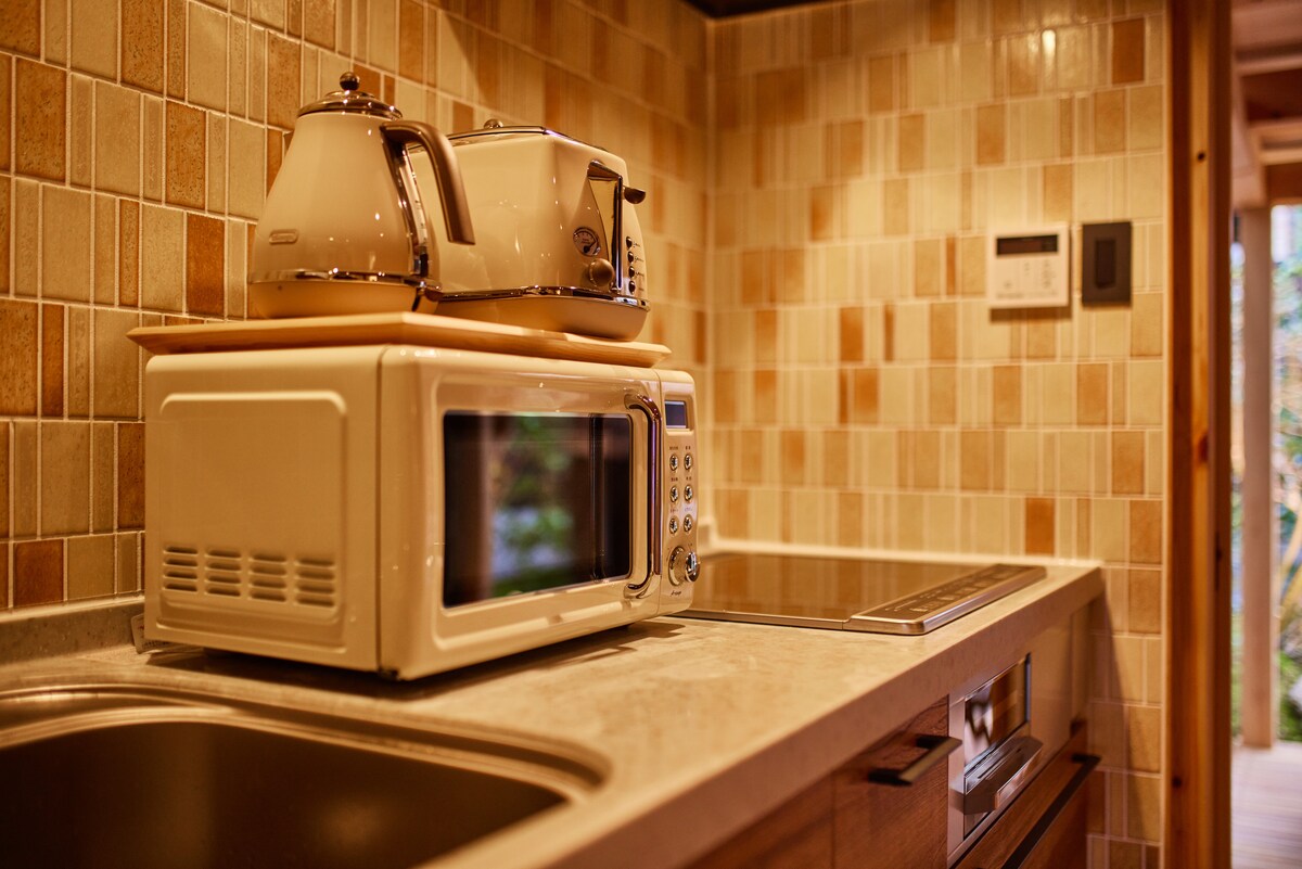 Create lasting memories in our modern Japanese-style machiya, designed for families and groups seeking a private and relaxing Kyoto experience. The home is perfectly located for sightseeing, just a 10-minute walk from both the magnificent Kinkakuji Temple and the historic Kitano Tenmangu Shrine. After a day of adventure, return to your peaceful haven and unwind in the aromatic hinoki (Japanese cypress) bathtub.