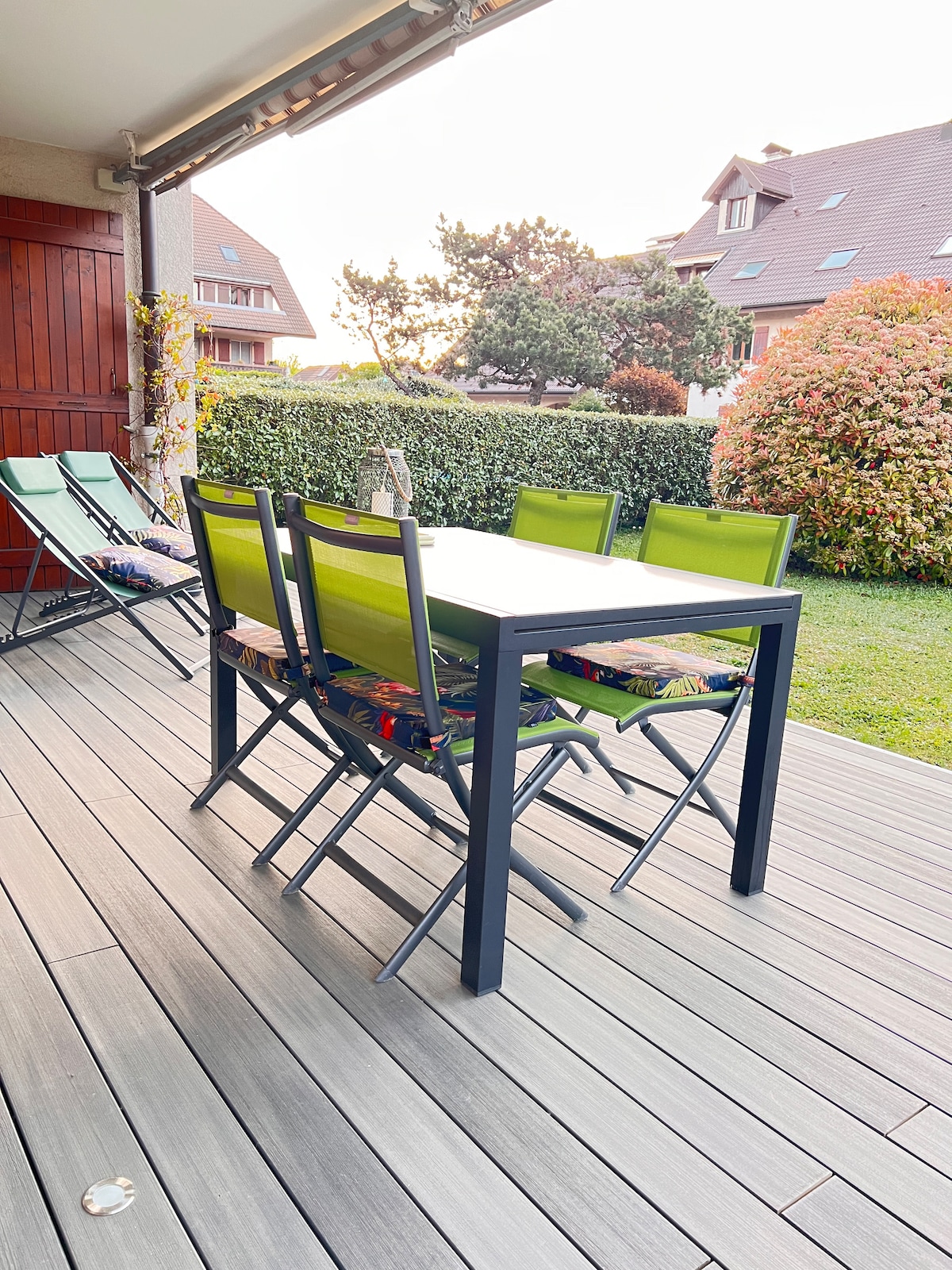 Solo para usted Chalet de 75 m2 a orillas del río en un entorno tranquilo entre Annecy y Ginebra y cerca de los lugares turísticos Disfrutará al aire libre de 2 terrazas, una de ellas protegida en un parque de 5000 m2 un verdadero nido de tranquilidad en el corazón de la naturaleza para volver a las fuentes y desconectar durante una estancia. No se aceptan animales debido a la proximidad de un haras y el paso de caballos en el camino.
