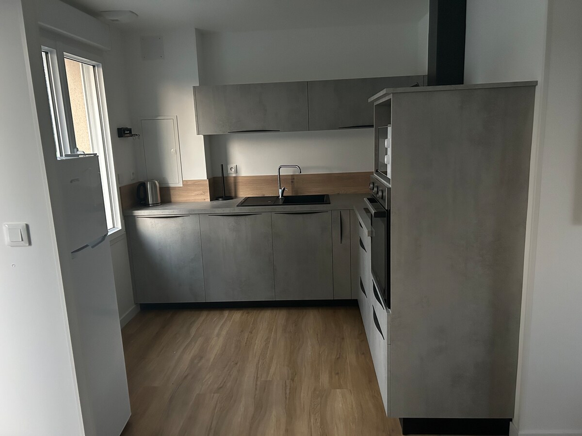 Su historia en la Historia. Venga a alojarse en el segundo piso de la mansión en un elegante apartamento de 65m2. Este apartamento goza de una vista despejada de la campiña de los alrededores, su decoración refinada invita a la calma y al descanso. La sala de estar ofrece un cómodo salón y una mesa de comedor, la cocina está equipada, el baño con ducha es amplio y agradable. Hay dos habitaciones, cada una equipada con una cama tamaño queen de calidad hotelera.