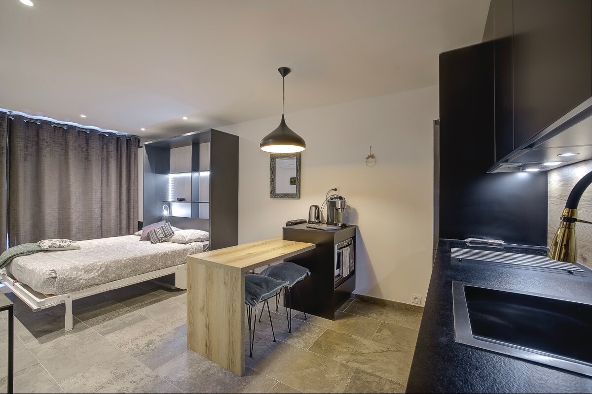 Disfrute de un apartamento decorado con buen gusto a 2 minutos de las playas de Cannes en una residencia segura. El apartamento es ideal para una pareja o una familia con un niño . - plaza de estacionamiento en residencia cerrada (a 2 minutos a pie del alojamiento) - Cama tamaño Queen (160 x 200 cm) - Calefacción convertible (90X200 cm) -Netflix -Aire acondicionado reversible -Cocina totalmente equipada -Lavadora secadora -Restaurantes y comercios cerca número de registro: 06029032085WF