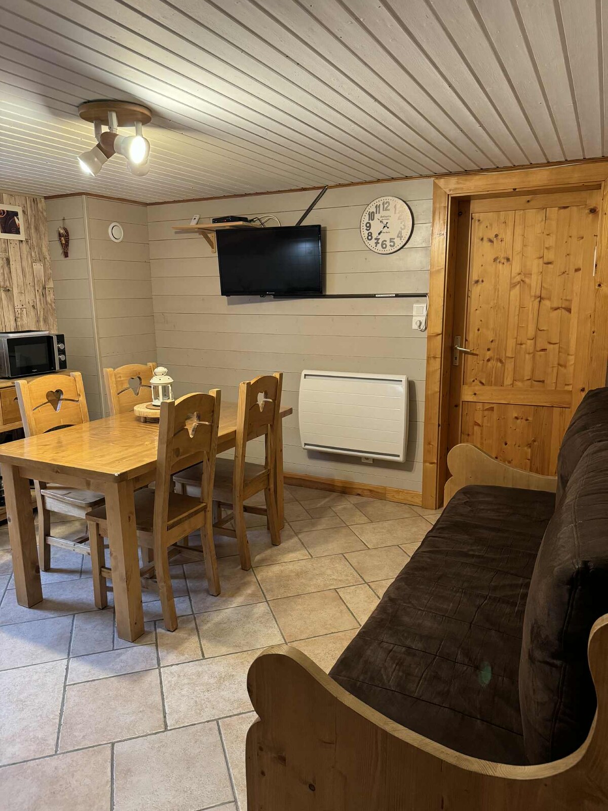 estudio totalmente renovado en 2018, 27 m2, 4 personas para no fumadores, frente a las pistas de esquí: -Sala de estar con sofá cama king size 1,80 por 2 m -2 literas 190*90 (separadas por una puerta corredera) -Cocina equipada (placa de inducción, horno combinado+microondas, lavavajillas, nevera grande, raclette, crepería...), - Baño con ducha, lavabo, espejo, inodoro - TV de pantalla plana grande de 100 cm -balcón orientado al sur: magníficas vistas a las pistas de esquí - callejón rodante - gran garaje 8 por 3,8 m