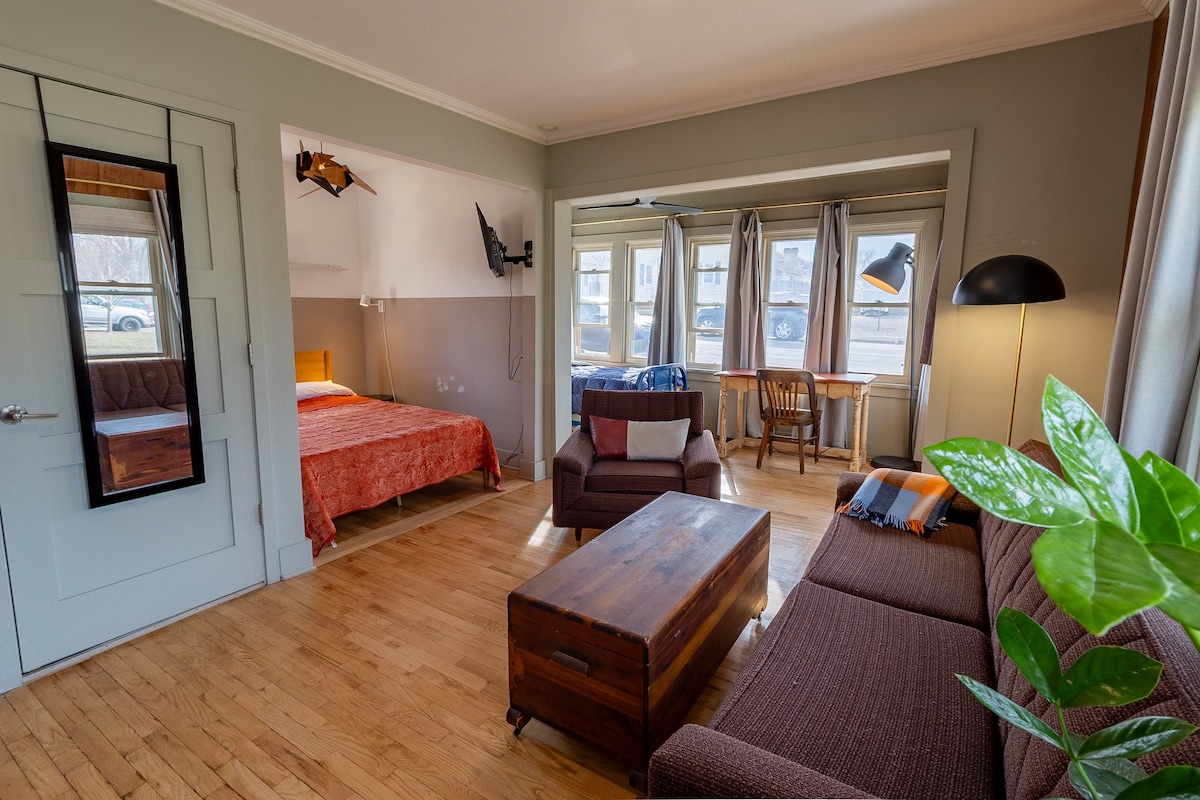 Ambiente rural en la ciudad con un estilo ambiente retro. Disfrutarás de fácil acceso a todo desde esta céntrica suite privada de nivel inferior. Ubicado en el histórico barrio de Red Cloud Park con acceso a los senderos para caminar/andar en bicicleta a pocos pasos de tu patio. Restaurantes y tiendas a pocas manzanas. UWL a solo 5 minutos en auto. Ya sea que busques un refugio tranquilo o estés en la ciudad para uno de los muchos grandes eventos de La Crosse, ¡esta propiedad será perfecta para ti!