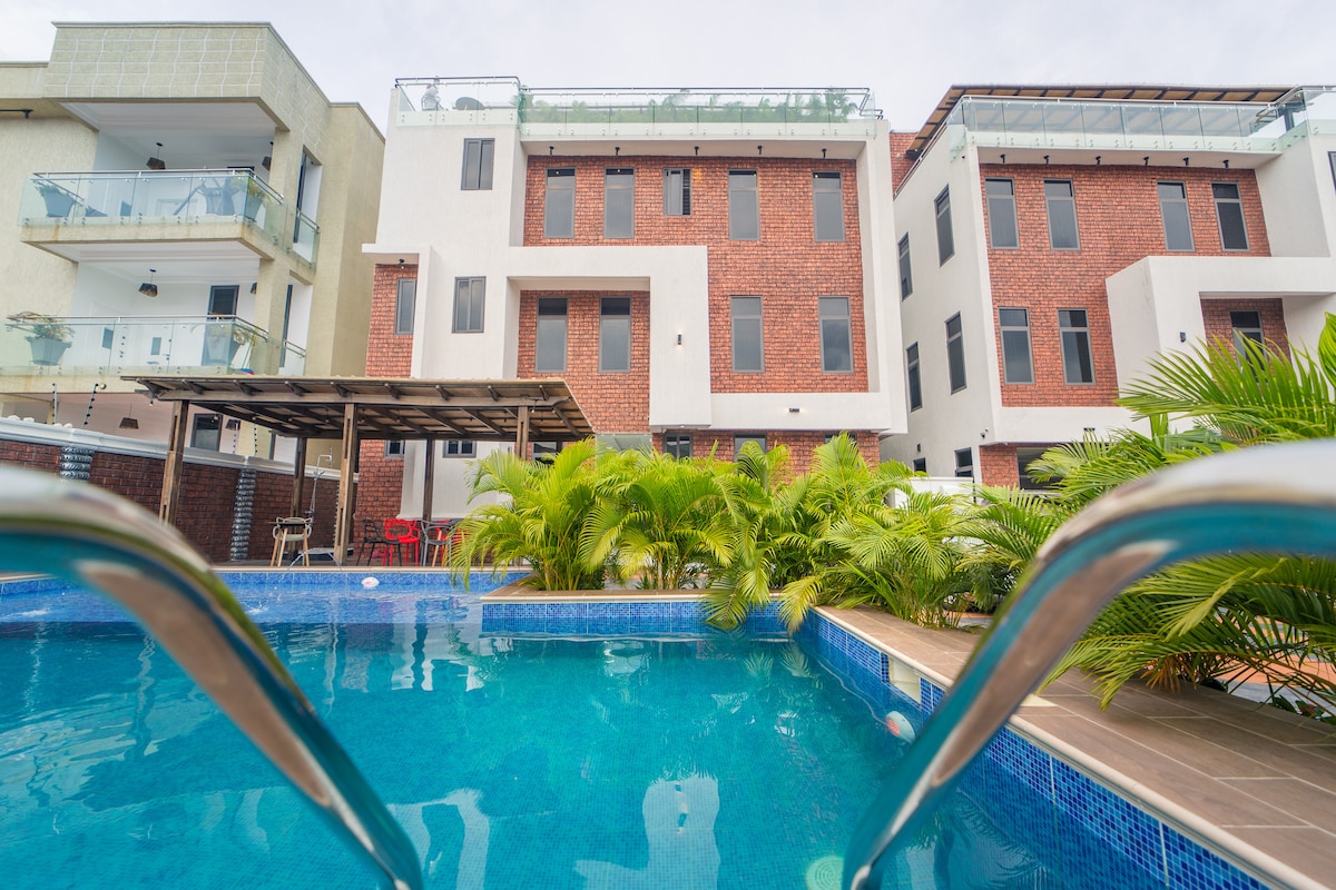 Disfruta de una estancia cómoda en este acogedor apartamento en el octavo piso con un baño limpio, cocina totalmente equipada y vistas impresionantes de la ciudad. Todo lo que necesitas para una estadía relajante está cuidadosamente provisto. Los huéspedes tienen acceso a una piscina en la azotea, gimnasio gratuito y cine privado (disponible bajo petición). 📍 Ubicación privilegiada: • A 7 minutos del aeropuerto. • A 4 minutos del centro comercial Accra. • A 5 minutos del nuevo Melcom.