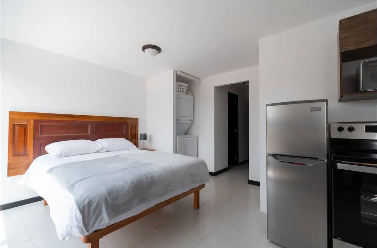 Apartamento ideal para parejas o familias pequeñas ya que incluye una cama queen y un sofa cama en la sala. La cocina esté equipada con los artículos necesarios para estadías cortas o largas para que puedas cocinar cómodamente si lo deseas. El edificio incluye amenidades como gimnasio, piscina, salón social, juegos de niños entre otros. Lugar céntrico con fácil acceso a la ciudad sin tanto tráfico. El dormitorio cuenta con amplio espacio de closet para acomodar todo lo que puedas traer.