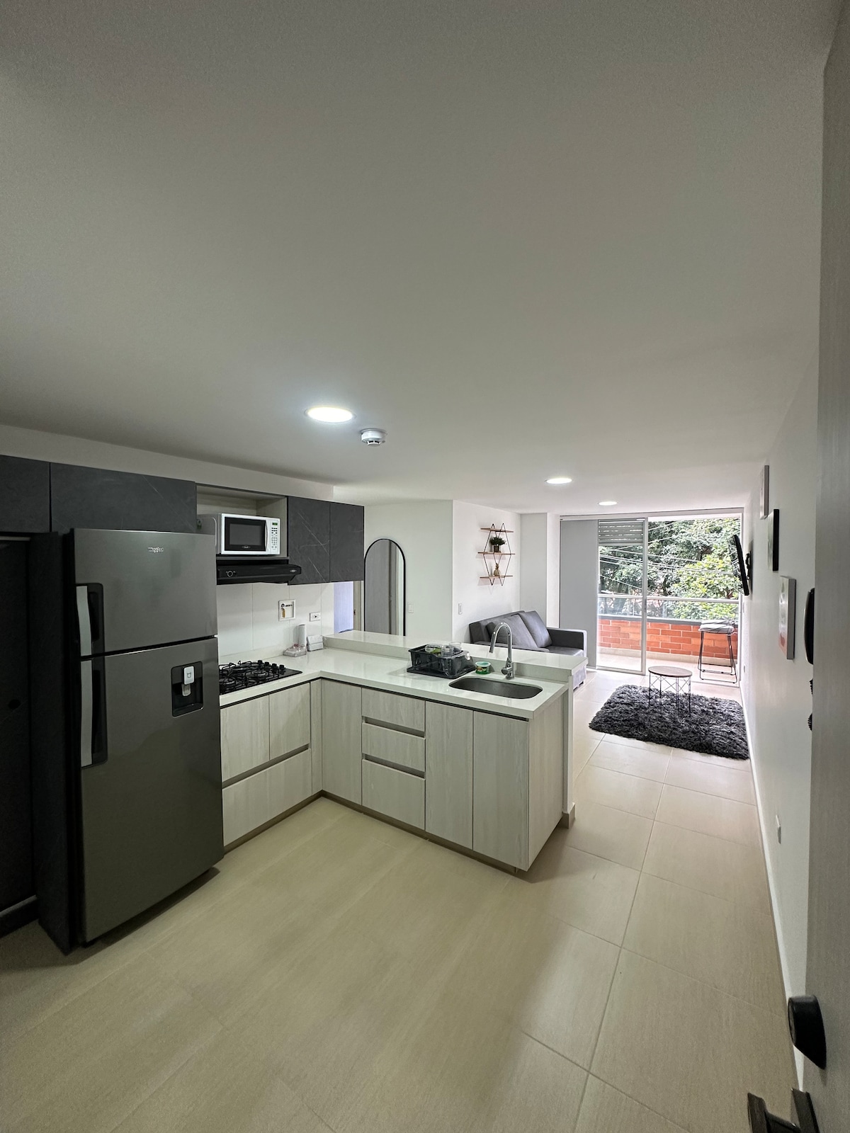 Suite completamente amoblada de 28 m2, con aire acondicionado y cocineta. Ubicada en una de las mejores zonas de Medellín, en un barrio muy tranquilo y cerca de todos los sitos de interés. La Suite cuenta con una vista espectacular a la ciudad y a las montañas. Podrás hacer uso de la zona de coworking, gimnasio y un espectacular café que ofrece diferentes tipos de bebidas a base del mejor café colombiano, podrás disfrutar de tu bebida en la terraza que se encuentran en el 2do piso del edificio.