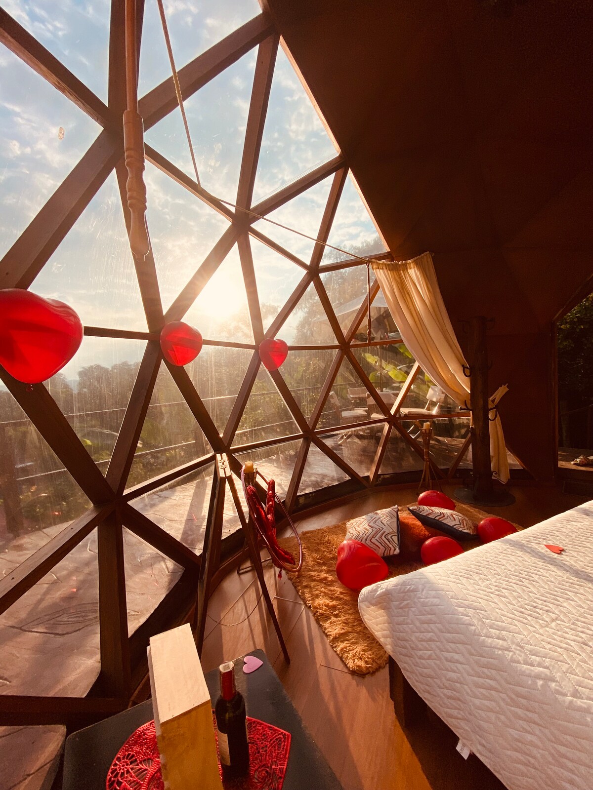 Si quieres un alojamiento alternativo Vista Hermosa GLAMPING te ofrece el mejor espacio con el glamur que te mereces en amplios geodésicos o domo, totalmente dotados e independientes, que te harán pasar las mejores horas en compañía de tu pareja, para construir los mejores recuerdos y quedar recargado para tus actividades habituales. Tendrás la oportunidad de escoger los mejores planes para celebrar tus fechas especiales