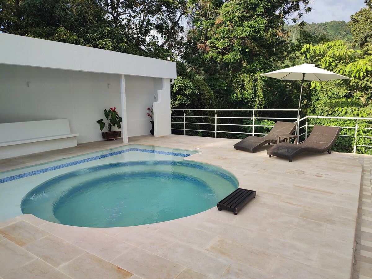 ¡ESTRENANDO PISCINA! Hermosa casa recién construida, perfecta para pasar unos días de relajación, vista espectacular, Sendero Ecológico/Frutales. Privada, 4 carros Pet friendly Buen menaje en las habitaciones, cocina y baños y televisión Direct TV Y muy buenWiFi Horno microondas, enfriador de agua, licuadora, cafetera. Terreno de 1 hectárea para caminar y disfrutar Nuestra casa y piscina siempre están impecables!! PUENTES FESTIVOS SE RENTA MÍNIMO DOS NOCHES.