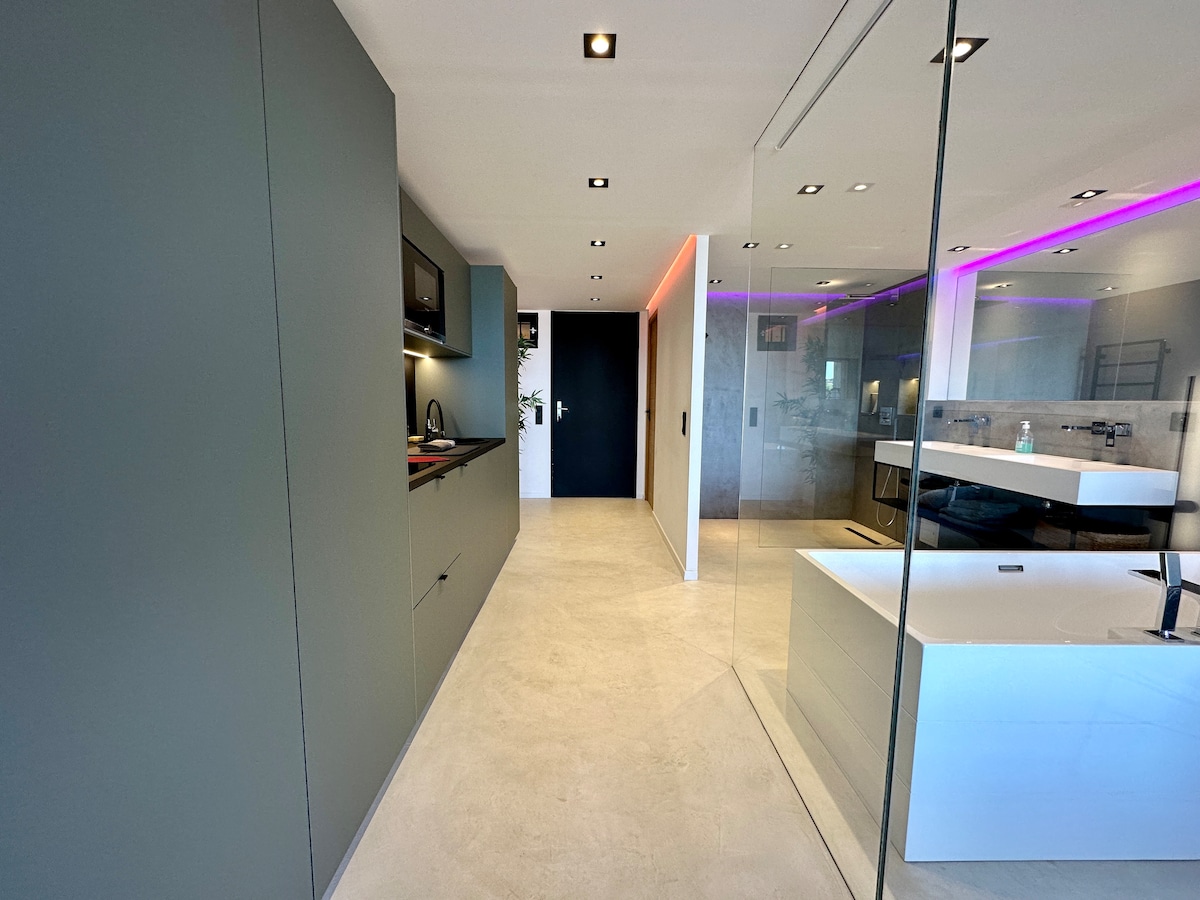Apartamento moderno con aire acondicionado restaurado de principio a fin. 37 m2 + 12 m2 de terraza. Playa a 50 metros a pie. EXCLUSIVO, Impresionantes vistas al mar de SAINT-TROPEZ desde la cama, la bañera, la ducha y la cocina ... Residencia con piscina tipo laguna+ plaza de aparcamiento y pistas de tenis. Acceso a la playa, puerto, restaurantes y tiendas a 50 m andando. El pueblo de Saint-Tropez está a 5 minutos en coche (tráfico normal) Apartamento de lujo en el segundo y último piso de un pequeño edificio de apartamentos
