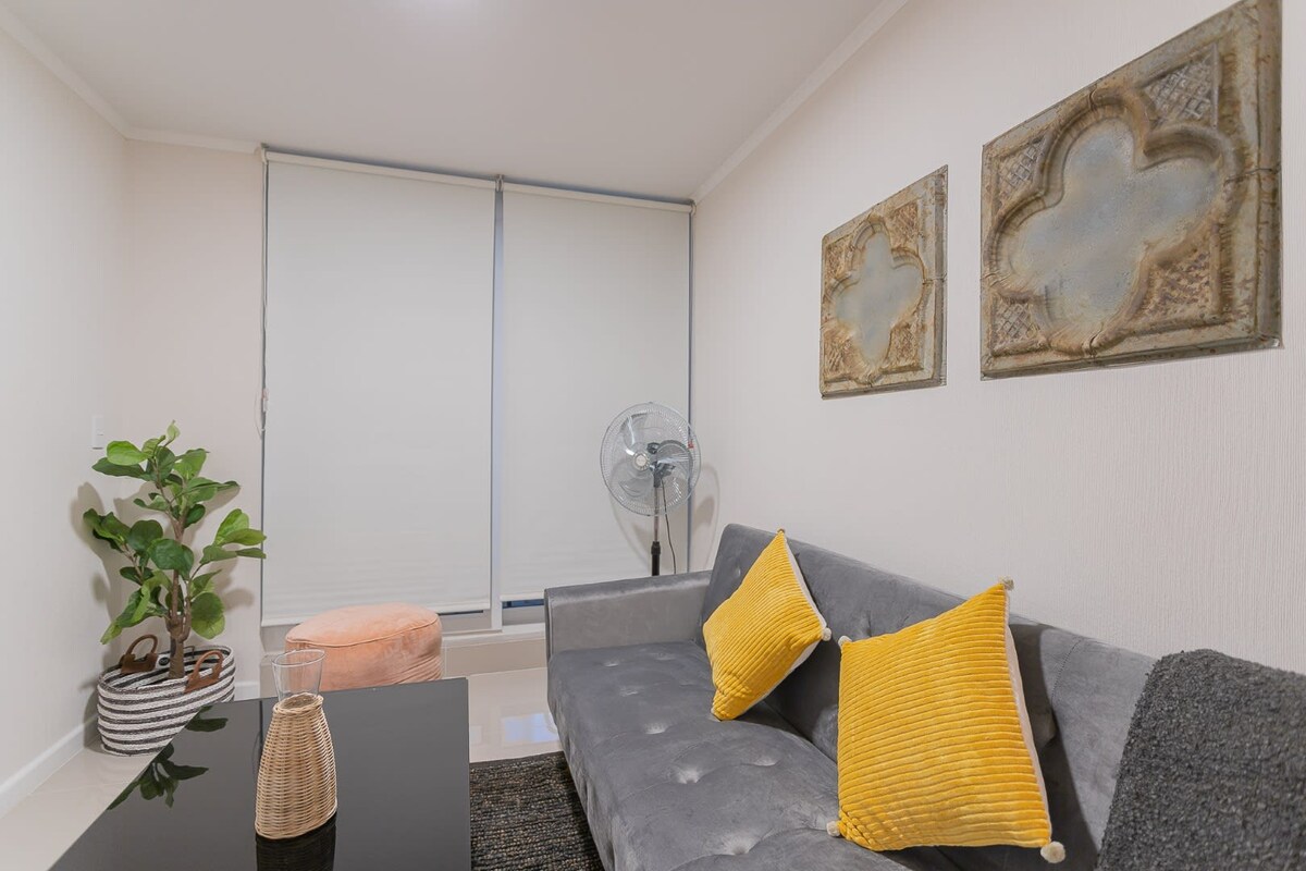 Apartamento nuevo para estrenar, perfecto para hasta 3 huéspedes. Cuenta con un dormitorio principal equipado con una cama doble y un moderno baño completo. La cocina, abierta al living, está equipada con lo necesario para preparar comidas y compartir momentos agradables. El salón incluye un cómodo sofá (ideal para el tercer huésped) y un televisor disponible para el entretenimiento. El diseño es moderno y minimalista, con detalles cálidos y terminaciones de calidad.