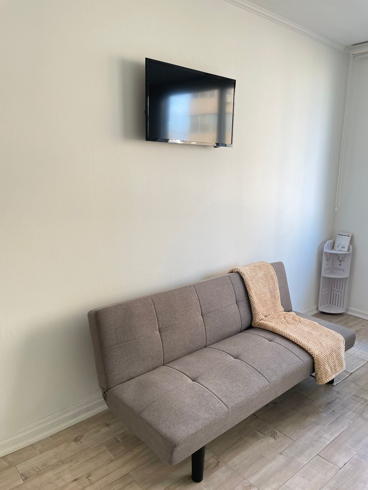 Un departamento acondicionado para que te sientas cómoda/o y puedas descansar, trabajar o explorar la capital de Chile, Full equipado: El departamento cuenta con lavadora/secadora, Internet Wi-Fi, aire acondicionado, Smart TV, cama de 2 plazas (con sábanas y cobertor), secador de pelo (baño completamente acondicionado con toallas, shampoo y acondicionador), entre otras comodidades. A pasos del Palacio de La Moneda (Palacio Presidencial), áreas verdes, juegos infantiles, taetro caupolicán.