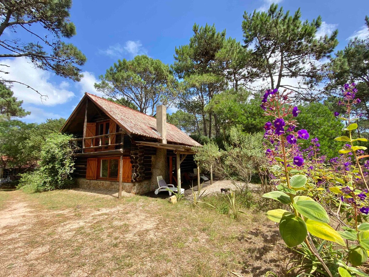 Cálida cabaña de troncos a pasos del mar. En Punta Rubia, La Pedrera, Rocha. Muy práctica, funcional y bien equipada para unas fantásticas vacaciones. Planta baja con living comedor, cocina integrada y baño completo. Muy confortable, cuenta con una estupenda estufa a leña. Planta alta con cama matrimonial y en ambiente separado, camas individuales. Dos balcones con hermosa vista al mar. Parrillero en desnivel, deck y pérgola. Deck frontal y lateral amueblado para disfutar del jardín.