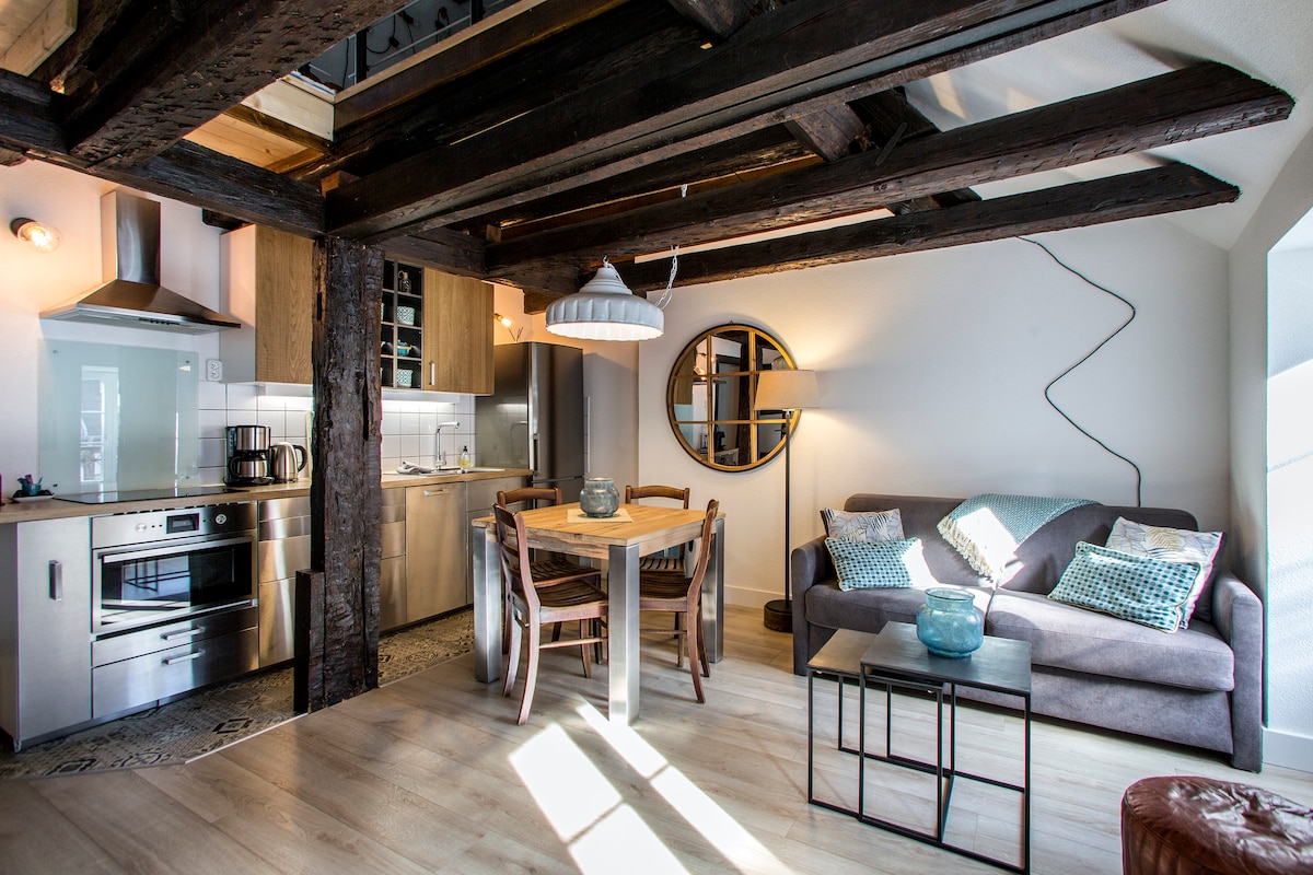 COLMAR HIPERCÉNTRICO - Rue des Marchands. - El apartamento está situado en el corazón de los mercados de Navidad y el mercado gourmet - Descubra este hermoso apartamento de lujo, totalmente rehabilitado en 2023, con una ubicación privilegiada; a dos pasos de la Casa Pfister, del Koifhus y de la Colegiata de San Martín. Una de las principales ventajas de este apartamento es su terraza privada. ¡Encuentra las comodidades modernas y el aspecto histórico de este edificio de entramado de madera de 1850!