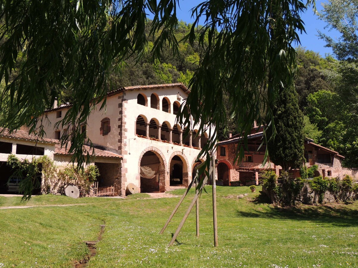 Encantador apartamento en El Molí d'en Solà, una de las grandes masias de La Garrotxa. con su antiguo molino al fondo de un valle verde y tranquilo. Entre el Pirineo y la Costa Brava. Animales de granja. Enorme jardín a tu disposición. Lugar perfecto para una experiencia en el campo. Piscina compartida (de junio a setiembre). Los niños menores de 14 años deben ir acompañados a la piscina de un adulto (mayor de 18 años).