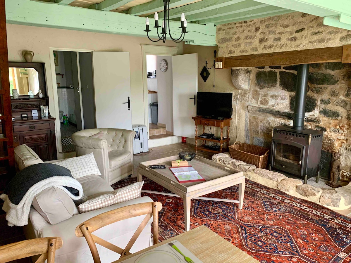 Relájese en esta pequeña casa adosada a nuestra casa principal que acaba de ser totalmente renovada por dentro. Su lado cálido le permitirá pasar buenos momentos, tiene la particularidad de tener un dormitorio, así como un altillo, por lo que los techos son bajos en el piso de arriba y la pequeña puerta de acceso a la habitación requerirá que pueda agacharse para acceder a ella… Proporcionamos ropa de cama y toallas.