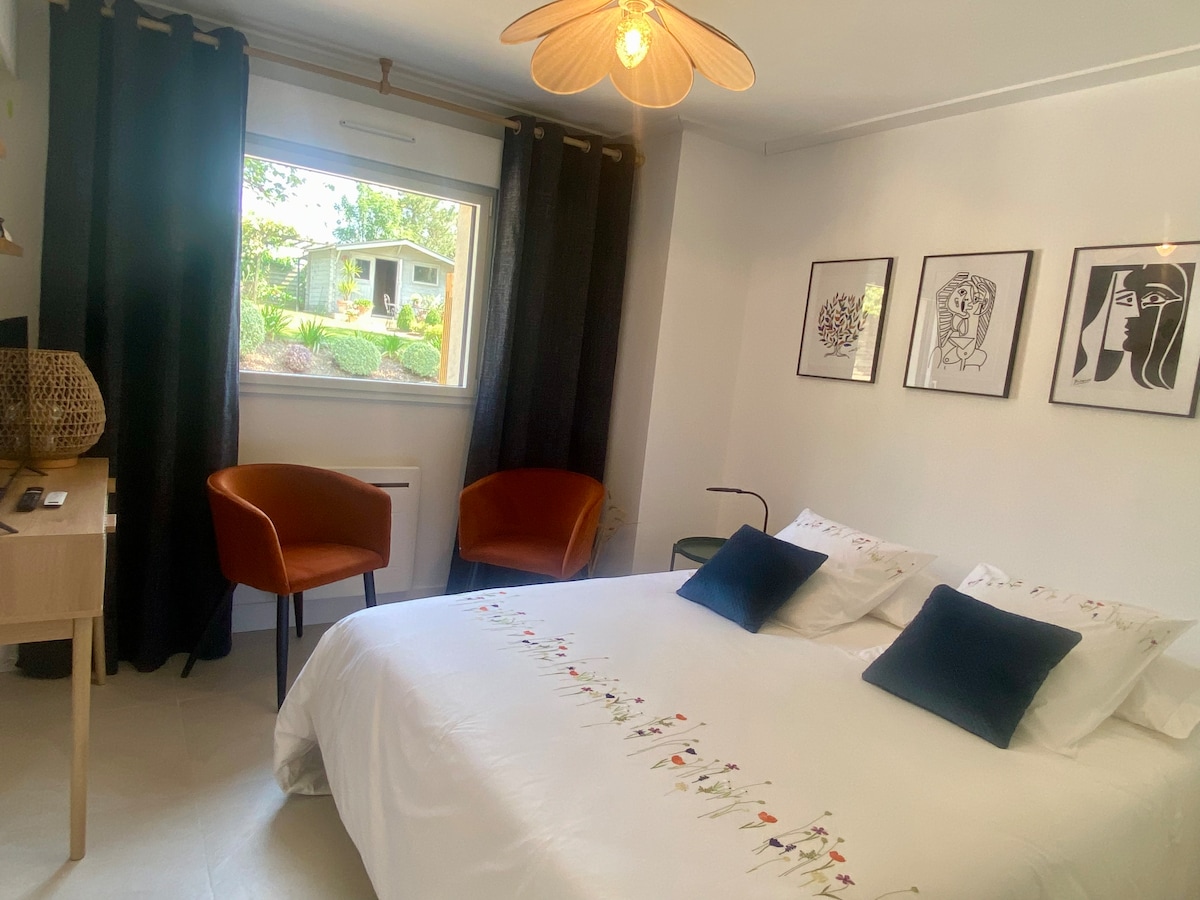 ¡Un pequeño trozo de vegetación y calma en el corazón de la ciudad! Este estudio te ofrece todas las comodidades: cama doble de calidad, ducha espaciosa, WC, cocina equipada, mesa de desayuno, vajilla, ropa de cama, toallas, paños de cocina, acceso a wifi/RJ45 en red dedicada, armario y ropero, café, té, infusiones. ¡Somos limpios! Prestamos especial atención a la limpieza. El acceso es a través del jardín, ¡la bebida caliente de la mañana será una verdadera delicia!
