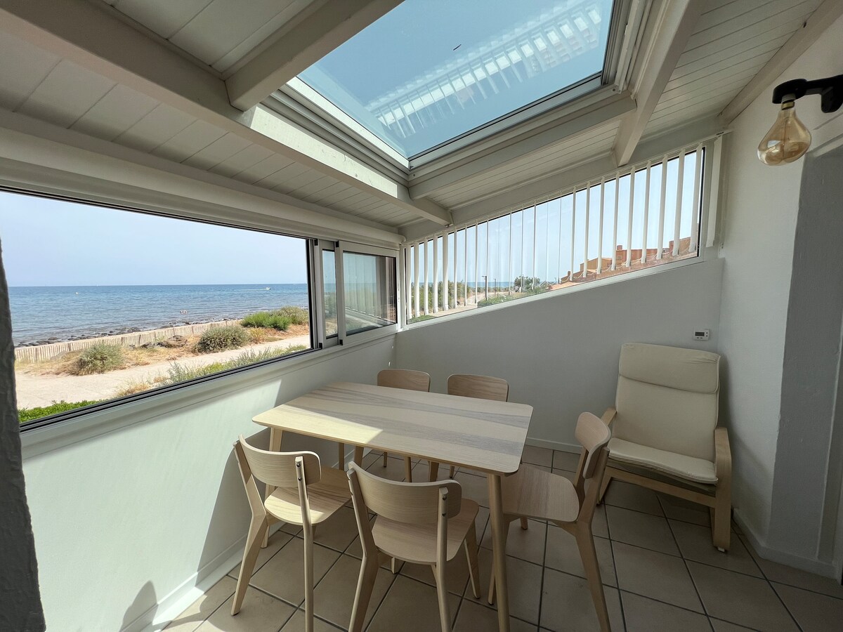 Grand studio pieds dans l'eau vue mer - 20m plage
