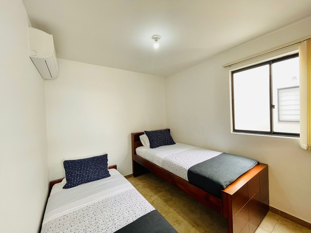 departamento con dos habitaciones con cama doble sala comedor cocina zona de ropa baño privado entrada independiente