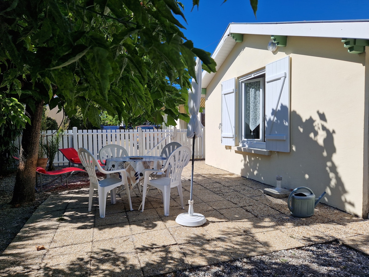Casa de huéspedes independiente de 30 m2, muy luminosa, ambiente tranquilo con terraza en un jardín de 100 m2, equipada para 4 personas o pareja con niños pequeños, cocina equipada, sala de estar con sofá cama para 2 personas, un dormitorio separado con cama de 140, baño agradable. Cerca del bosque, el centro de La Teste, a menos de diez minutos del centro de Arcachon, sus playas, únase a la duna de Pilat en 1/4 de hora para la puesta del sol o disfrute de las playas del océano y sus olas. Mínimo 2 noches
