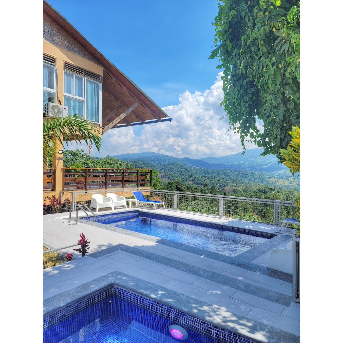 Hermosa villa para toda la familia, de tres plantas, ubicada en medio de dos reservas científicas, Ebano verde y Las neblinas, a 10 minutos de las piscinas naturales El arroyazo, una alternativa ideal para unas vacaciones en descanso, así como para celebraciones, pasadías familiares o de amigos, entre otros. Cuenta con pequeña piscina con calentador, terraza, chimenea, áreas de juegos de mesa y pared, mesa de billar, bbq a leña y carbón, tv, wifi, Netflix, Inversor.