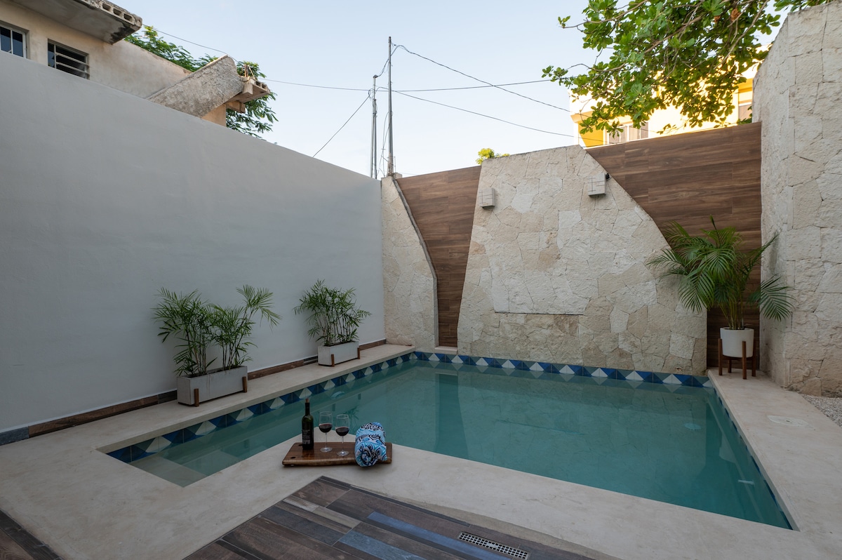 Toma un baño en la piscina privada de este encantador departamento en Tulum