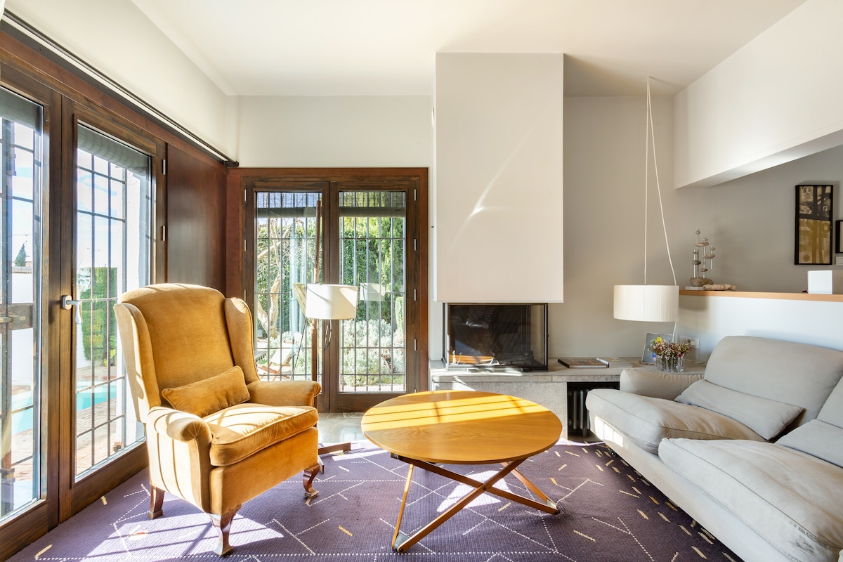 Casa con piscina privada y chimenea