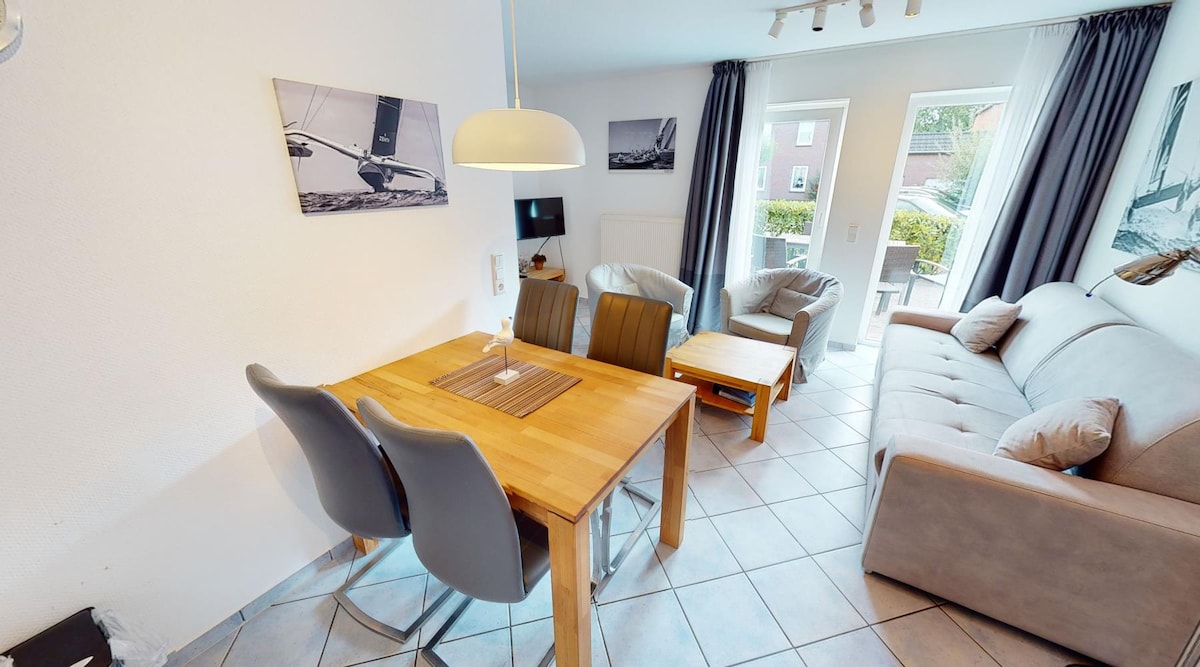 En el puerto de ocio y yate "Marina Wendtorf", la casa adosada "Nordlicht" ofrece una oportunidad única para pasar unas vacaciones en el mar Báltico en el fiordo de Kiel. Para un máximo de 4 personas, la casa de vacaciones en dos plantas y 68 m² ofrece dos dormitorios en la planta baja, una cocina abierta y una luminosa sala de estar con aire acondicionado y SmartTV de 50 pulgadas en la planta superior, así como una amplia zona al aire libre con solárium.