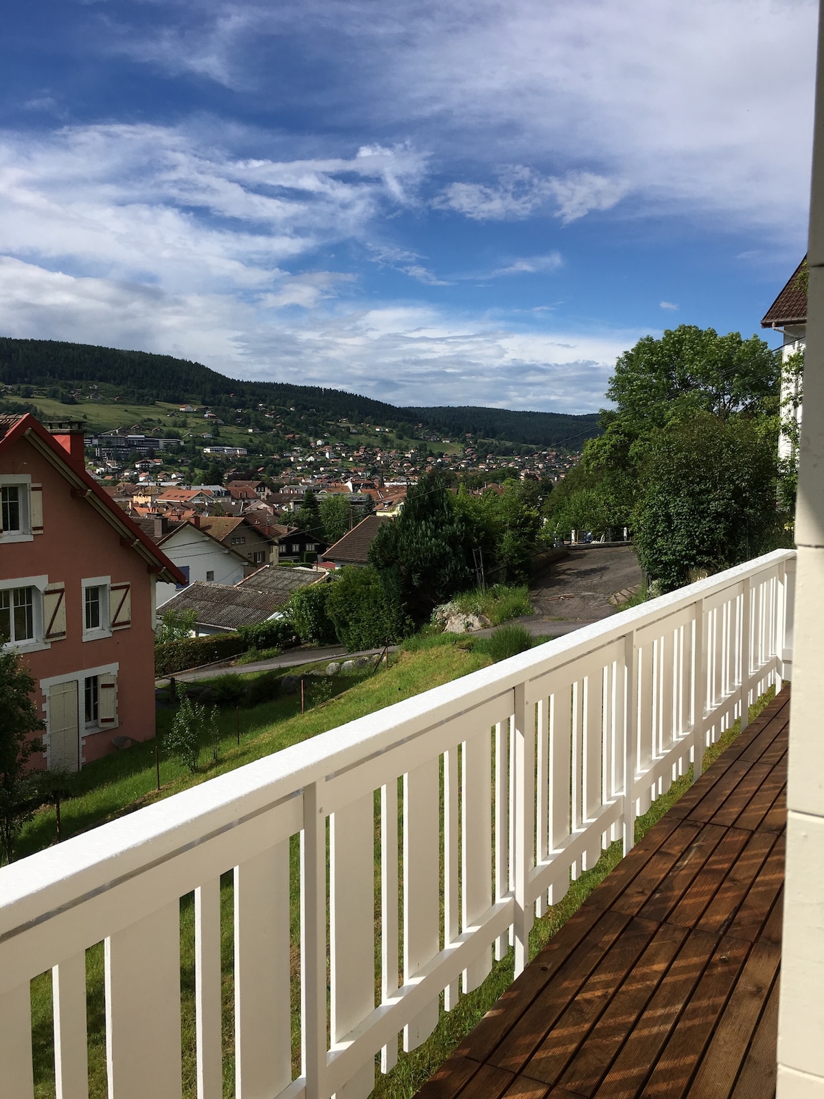 Apartamento de 92 m² situado a menos de 5 minutos a pie del lago, de los autobuses de esquí, de las tiendas (panadería, supermercado...) y del centro de la ciudad (tiendas, mercado...) Apartamento nuevo amplio muy luminoso, abuhardillado, situado en la planta superior (3.ª) con terraza y plaza de aparcamiento privada El apartamento incluye: Salón / S A M Estufa de pellets Cocina equipada Cuarto de baño con ducha doble Equipamiento para bebés Aseo 2 habitaciones almohadas edredones incluidos Terraza+barbacoa eléctrica+mesa de jardín