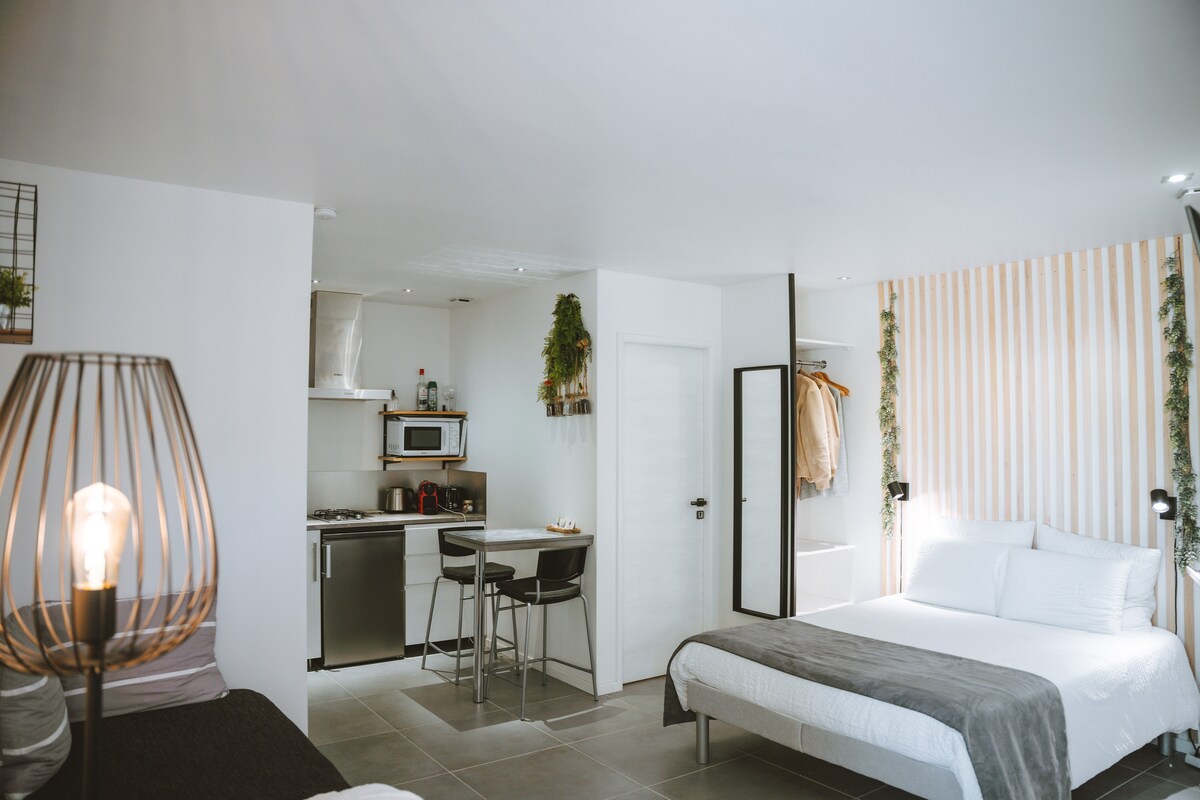 Relájese en este alojamiento tranquilo y elegante en el corazón de la ciudad de Valence a 10 minutos del centro de la ciudad muy tranquilo La villa 48 , son tres alojamientos elegantes, espaciosos y tranquilos para darle la bienvenida con total tranquilidad .El apartamento N°1 está situado en el 1.º piso con acceso por una escalera , este alojamiento dúplex dispone de una amplia sala de estar , la habitación está arriba con su baño.Todas las comodidades están a su disposición .