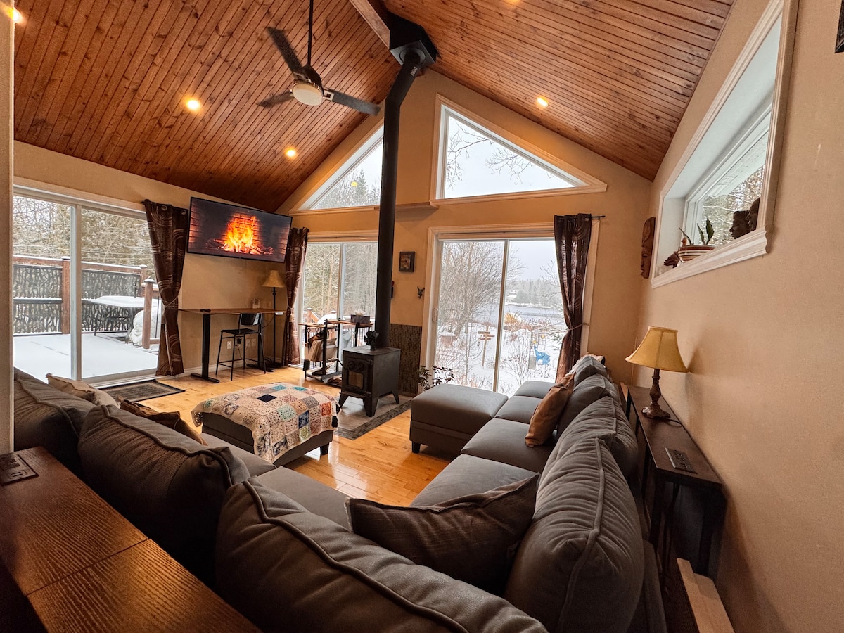 Luxe et Sérénité au Bord de l’Eau. Situé sur les rives sablonneuses de la rivière Rouge, le Refuge de la Rouge charme par sa vue imprenable et son confort exceptionnel. Literie haut de gamme et poêle à bois créent un havre de paix idéal pour se ressourcer en pleine nature. À seulement 20 minutes du village pittoresque de Tremblant, profitez d’une multitude d’activités : randonnée, ski de fond, raquette, kayak ou vélo. Le tout dans un cadre enchanteur qui fera de votre séjour un rêve éveillé.