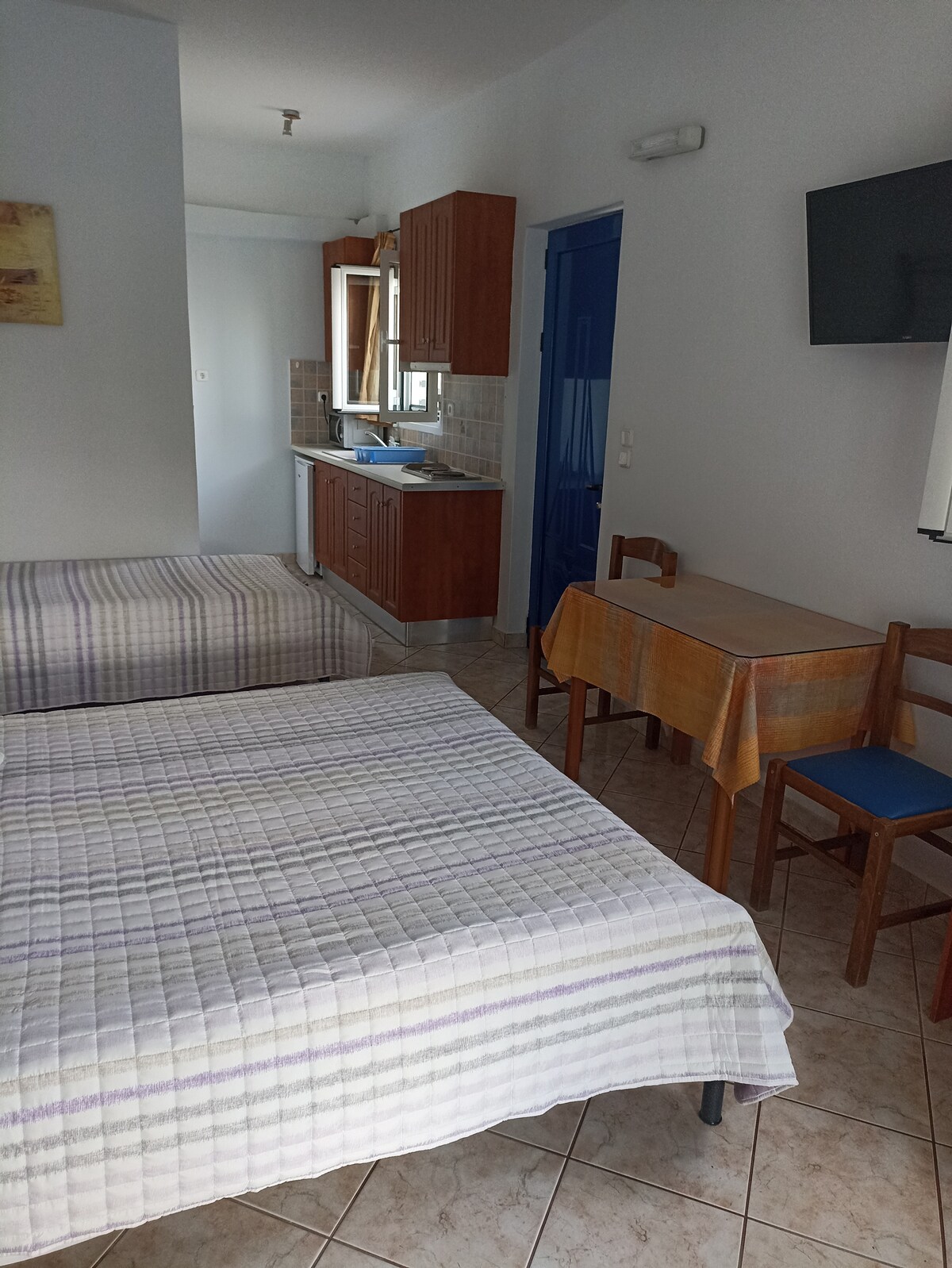 Double room with Two (2) Single beds that can be placed next to each other and become like one (1) large double bed (depending on the guest's wish), refrigerator mini bar, a / c and private WC. Veranda with wonderful views of the Laconic Gulf.