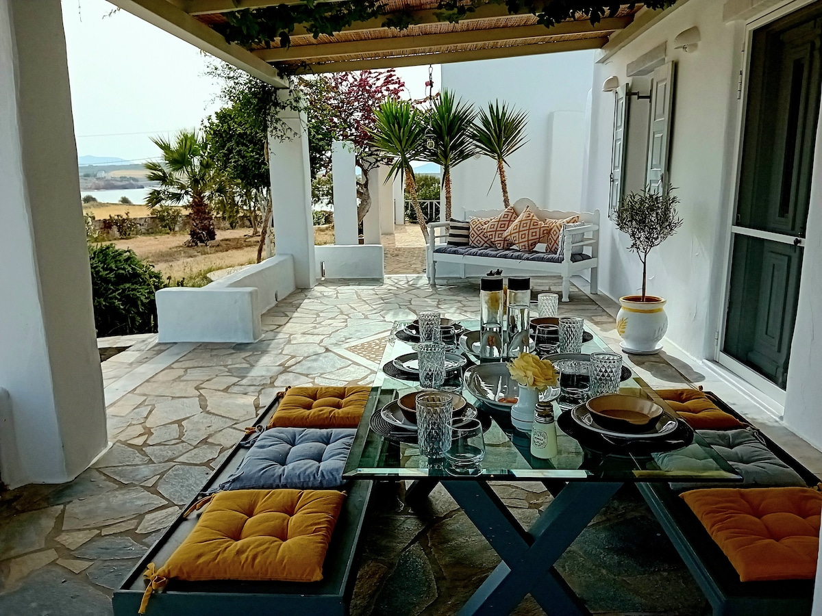Ione is a peaceful seaside residence in Naousa Paros, located between Xifara and Lageri beach extended on an area of 9 acres. The reference point for this minimalist house is that it is situated just a few meters from the sea, very close to the most beautiful beaches of the island, and only 3 km from the bustling center of Naousa. Our mission is to offer you unique hospitality for an unforgettable vacation experience.