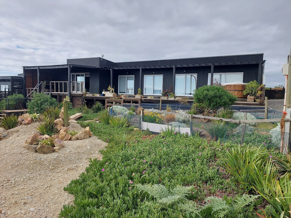 Casita boutique está diseñada y construida con excelentes terminaciones y materiales. Acogedora, espaciosa, y con detalles en su decoración, generan un espacio ideal para el descanso y la tranquilidad. Tiene una terraza cerrada, protegida del viento con una tina isla para relajarse. Una preciosa vista al mar desde el dormitorio principal y jardines para salir a pasear. Ubicada, subiendo por un camino de tierra hacia el cerro a 5 min en auto de la playa Punta de Lobos. Contamos con Wifi.