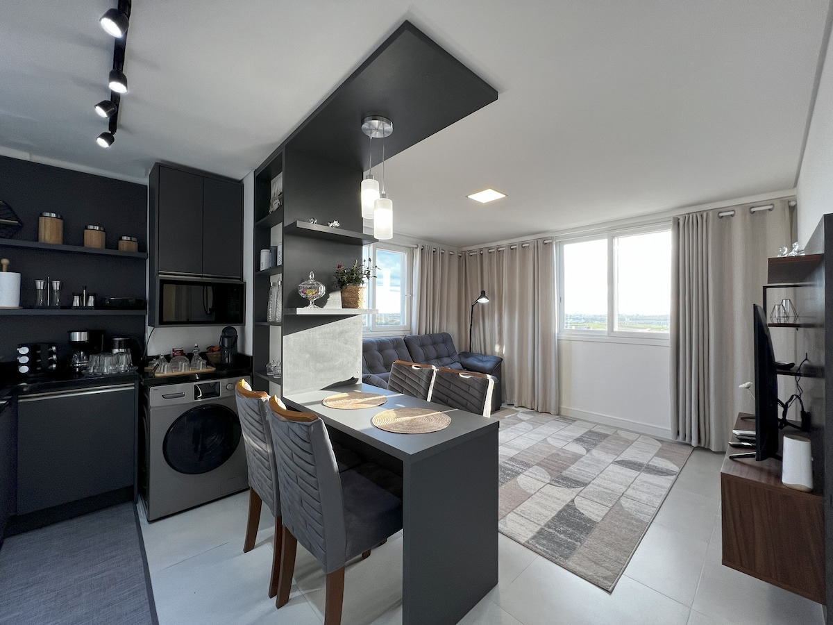 Elegante, nuevo y confortable - El apartamento Alta Vista está cerca de todo y por estar en el último piso (9°) también tiene una vista privilegiada de la ciudad. ¡Un lugar donde te sentirás como en casa! Aquí, ofrecemos una experiencia única y acogedora que sin duda hará que su estancia sea inolvidable. El apartamento Alta Vista cuenta con todas las comodidades que necesita para una estancia agradable, desde una cocina totalmente equipada, balcón con barbacoa, habitaciones con aire acondicionado y Wi-Fi.
