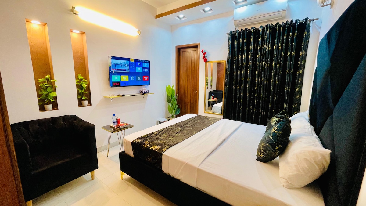 ID Card/Passport will be required after booking through airbnb and may be taken for security purposes through your stay. -Wi-Fi -A.C/Heating -Attached bathroom with hot water -Shared kitchen and lounge. -Full king-sized bed, mini-fridge, and cupboards. -Smart TV. Mattresses are charged separately for 500pkr each (3 mattresses are free) No Smoking in listing premises Only married couples allowed due to pakistani local laws(documentation required) visitors allowed with permission only