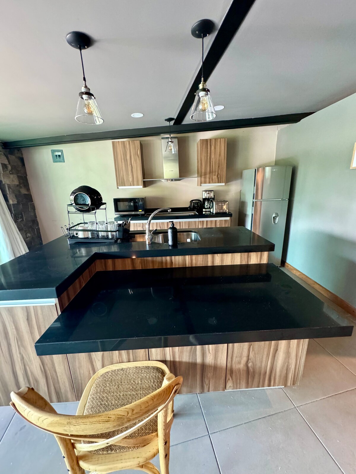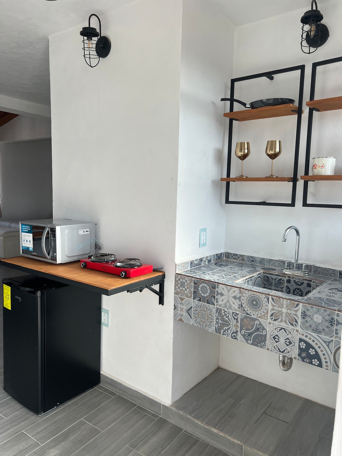 Disfruta de la sencillez y elegancia de este alojamiento tranquilo y céntrico. Es una habitación tipo loft hay otro loft más al lado con el que comparte terraza y estacionamiento , cuenta con un balcón hacia la calle es muy fresco cómodo y agradable es totalmente nuevo y acogedor, cuenta con cama matrimonial, dos sillones para dos personas, mesa para dos, un baño completo para cada habitació y hermoso, una pequeña cocina para dos,, con parrilla eléctrica, microondas y frigobar, Cuenta con solar
