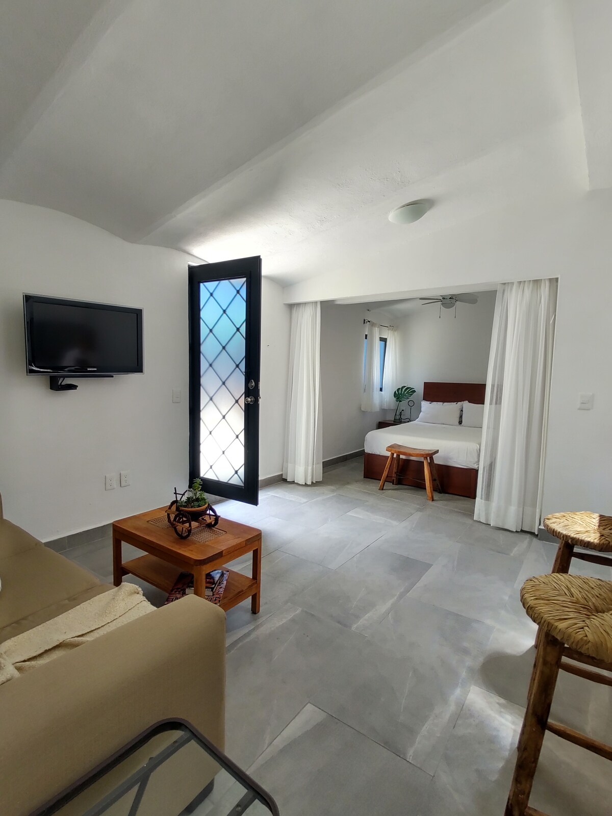Apartment Sol is a large Studio Casita. It has Fiber Optic High Speed Wifi, an equipped kitchen, a full walk-in bath, a sitting area and a full size bed. Guests describe it as cozy, VERY quiet and very clean. This is not a Gringo enclave. Our neighbors are dear Mexican Friends. We have a large garden and a barbeque. We are 4 streets from the Malecon and Plaza. We DO NOT allow parties or noise. Hope to see you soon!