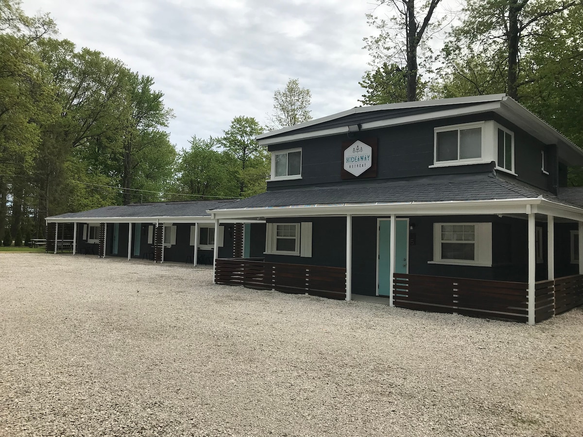¡Ahora ofrecemos estancias de 1 noche! ¡Ubicado en Geneva-On-The-Lake, la ciudad turística más antigua de Ohio con mucha historia y atracciones únicas! Camina hasta el lago Erie y la famosa «Strip». Este albergue de la década de 1950 está siendo renovado y reimaginado en el primer motel boutique temático de registro automático de Geneva-On-The-Lakes, ¡donde cada habitación es una experiencia única! Cada habitación tiene un estilo diferente, todas con toques personalizados y de diseño en todas partes.