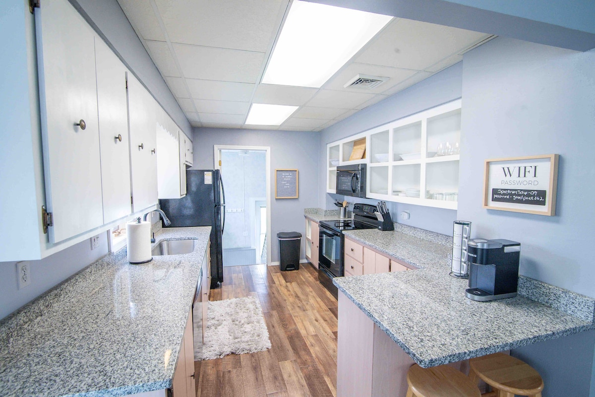 «The Dotte» a 7 manzanas del centro de Royal Oak y a minutos de los lugares favoritos locales como el zoológico y el mercado de agricultores. * Cocina totalmente equipada * Cama tamaño king en la habitación principal + TV * Cama tamaño queen en la planta superior + TV * Litera completa/doble + TV * Hulu, Netflix y Disney Plus. * Rincón especial de lectura arriba con libros y juguetes. * Casa apta para mascotas con patio vallado, espacio para correr y servicios para mascotas como cuencos, puerta para mascotas, bolsas para perros y más. * Escritorio para trabajar desde casa y wifi rápido. * Hay muchos bares, restaurantes y parques locales.