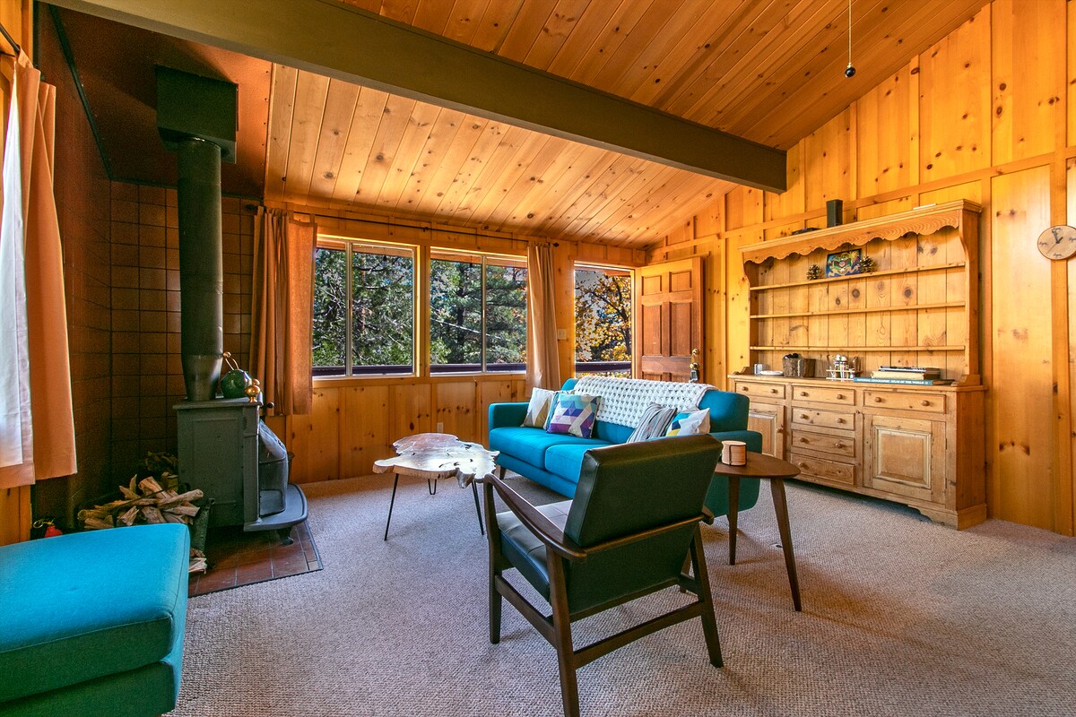 Perched high on Idyllwild’s North Ridge, Treetop Terrace sits in a canopy of oak trees and offers amazing views from its expansive upper deck. Enjoy the charm of its mid-century architecture and vintage-inspired furnishings. Features include floor-to-ceiling windows, an open-concept layout, a recreation room, and wheelchair accessibility. Conveniently located 3-minutes from the village, it is easy to enjoy the charms of Idyllwild and the beautiful San Jacinto mountains from the Treetop Terrace.