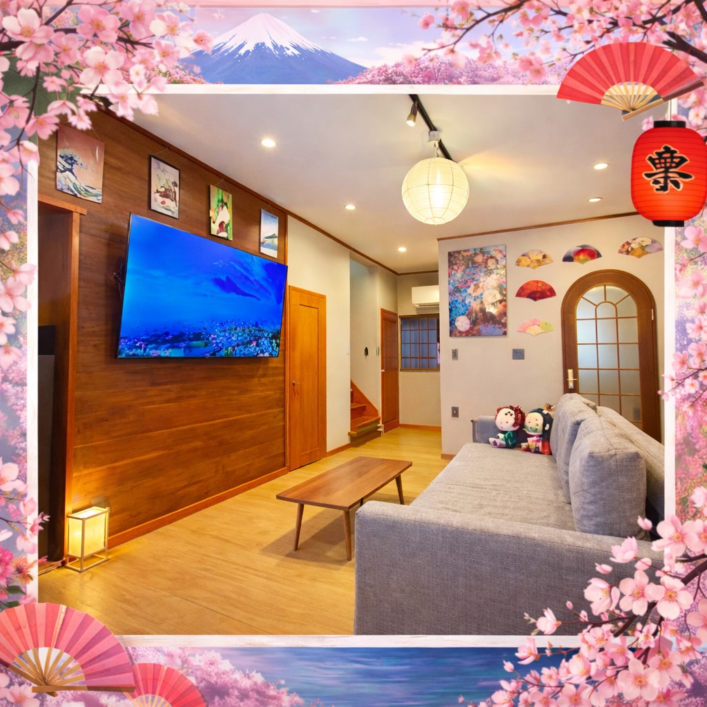 当宿は河口湖駅・富士急ハイランド駅の両方、大型スーパーが徒歩圏内であり、様々な観光地に足を延ばす拠点として最適です。ベランダ・リビングからは富士山がご覧いただけます。 リノベーションされた一軒家で、美しい自然に囲まれた立地にあり、日常の喧騒から離れてリラックスできます。ベランダのダイニングテーブルから、富士山を眺めながらゆったりとした時間を楽しめます。 BBQ設備も整っており(※別料金)、家族や友人と一緒にアウトドアクッキングを楽しむことができます。室内は高級感溢れる内装で、快適さを追求したデザインとなっています。自然の中でのんびりと過ごしながら、特別な時間をお楽しみください。 ドラム式の洗濯乾燥機、Wifiを完備しており、リモートワークを行いながらの長期滞在にもお勧めです。カタンやカードゲーム・TVもあり、室内でも快適にお過ごしいただけます。 春は富士山と桜の絶景鑑賞、夏は富士登山、秋は紅葉、冬は雪見富士・スキーと季節ならではの自然と文化をお楽しみいただけます。河口湖湖畔のサイクリングやカヌー体験等もおススメです。 『お気に入りに保存』すると次から探し易くなり、お勧めです。