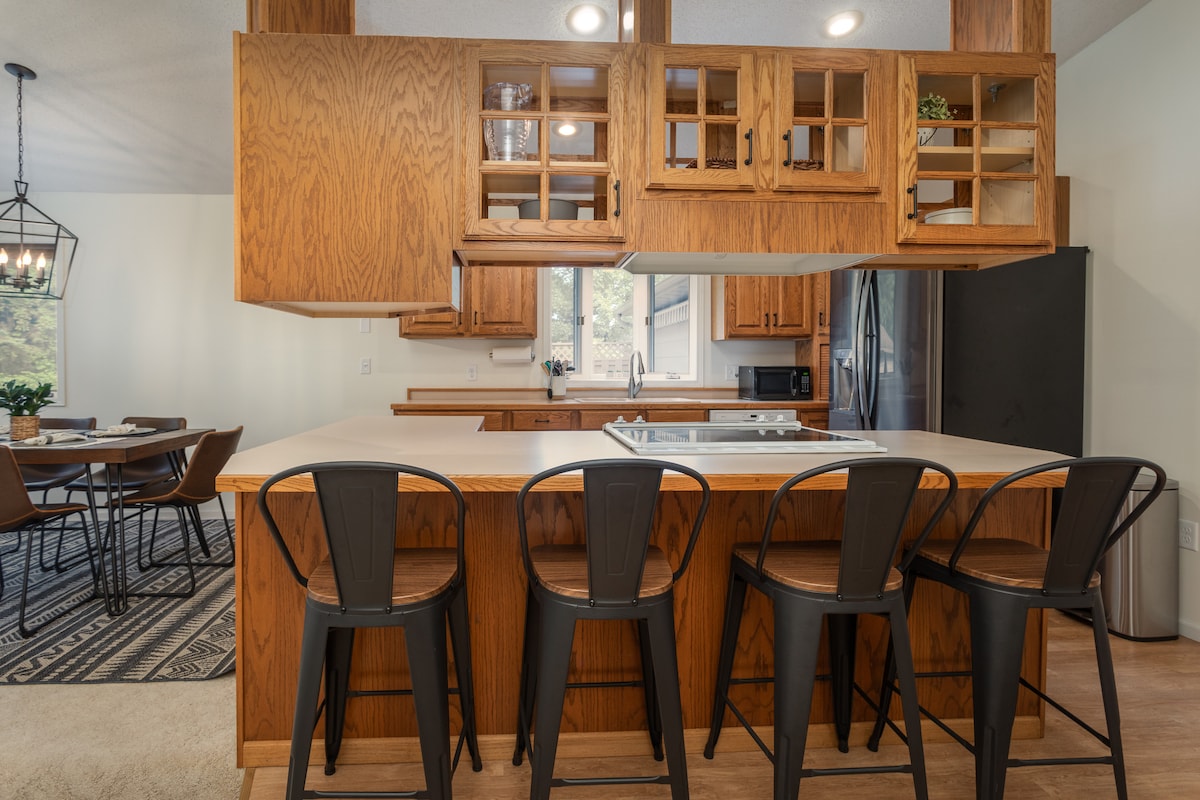 Lake Henry is the hidden gem of Alexandria. This lower traffic lake is perfect for swimming or boating and it has some of the best Walleye fishing in the area. Located in the heart of Alexandria this house is minutes from everything while still having a country feel- you will not find more stunning views. The stylish interior has a fully equipped kitchen, washer/dryer, multiple TVs, and fast Wifi. The exterior has a beautiful 3-season porch and deck that faces the lake along with a fire pit.