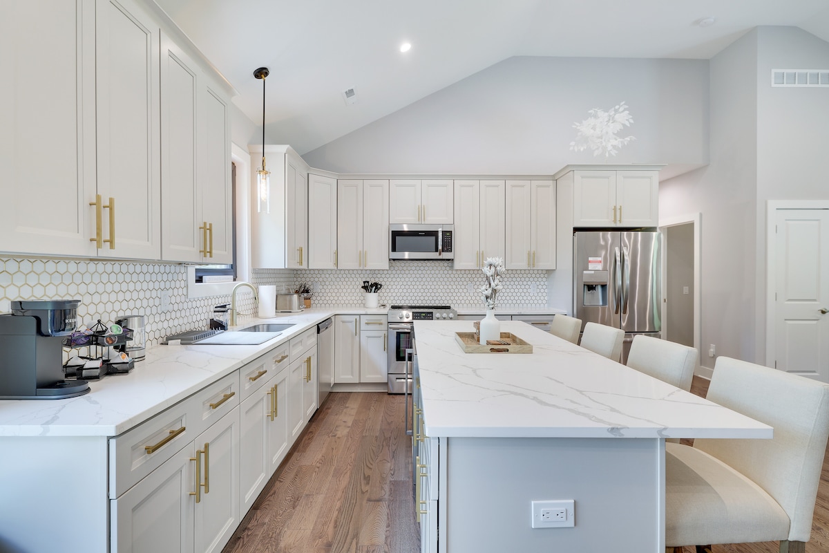 Ven a relajarte en esta escapada pacífica. Ubicado en el centro de todas las atracciones principales. Este alojamiento de 3 habitaciones y 2 baños tiene capacidad para 8 adultos. El espacio 🛏️Dormitorios • 1 cama tamaño king de lujo. • 5 cómodas camas tamaño queen, - LITERAS DE TAMAÑO COMPLETO • Pastillas y edredones de plumas adicionales en cada habitación 🚿El alojamiento tiene 2 baños, uno en cada piso. • Toallas de baño y de cara -Champú y acondicionador • Gel de ducha • Secador de pelo. • Botiquín de primeros auxilios. 📍A pocos minutos del casino Mount Airy, Kalahari Resort y Great Wolf Lodge