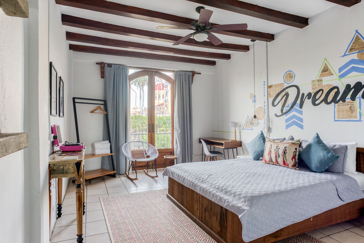 The most stunning house in Granada! A one of a kind 12,000 sq. ft., 4 suites colonial house in the heart of town. Built in the 1840s, the house was given a loving restoration to preserve original architectural details and integrate modern amenities. The house has 2 beautiful courtyard gardens. One has a calming water fountain and the other contains a very inviting pool, to cool off when the afternoons get hot. The King size bedroom is equipped with a desk and private bathroom.