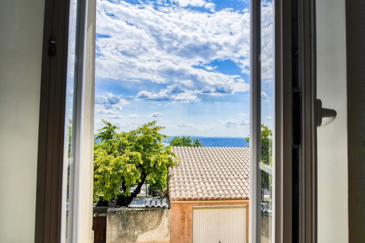 Esta casa de 62 m2 , se encuentra en el corazón del pueblo de Sainte Croix y tiene las vistas más hermosas del lago y las montañas de la región . En la bella estación que es larga en Provenza , podrá tomar todas sus comidas en el jardín bajo la pérgola , o descansar en tumbonas mientras admira el lago que está justo debajo de su casa . Puede no mover su coche durante toda su estancia , lago , supermercado , restaurantes , están todos a poca distancia a pie en 5' .