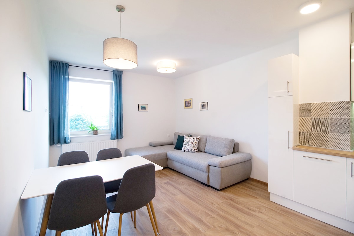 The Space You can approach the apartment by several local buses, also, there is free parking available in front of the house. It's a separate apartment on the ground floor with a window looking at the park of the city's water company. The apartment is 33 m2 and it has hi-speed WiFi. We don't smoke or keep pets in the apartment, we would like you to join us in this. The apartment has space for a maximum of 3 people: a double bed (140x200) and a bendable sofa (120x190),