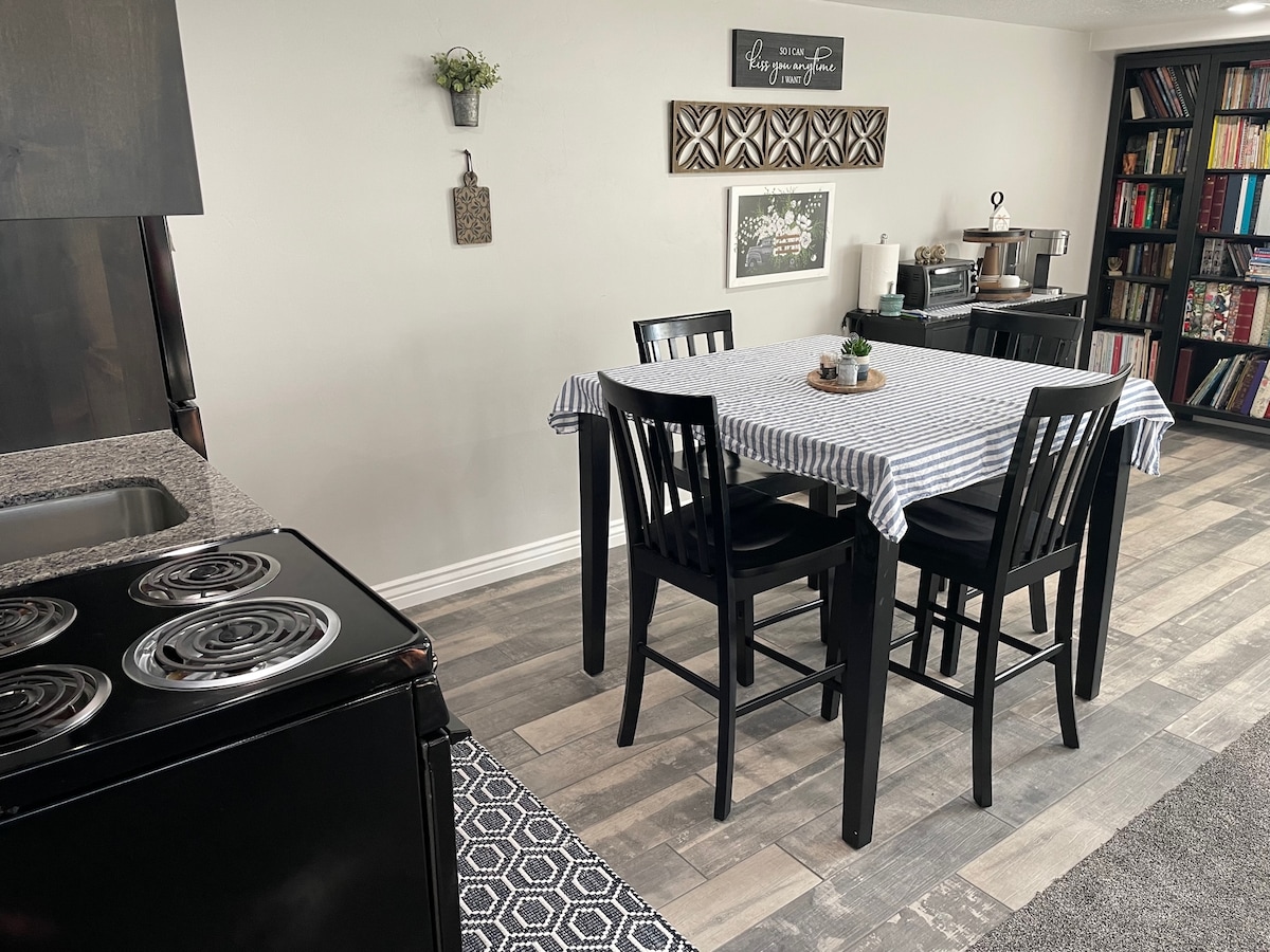Apartamento en el sótano recién terminado, luminoso y completo.